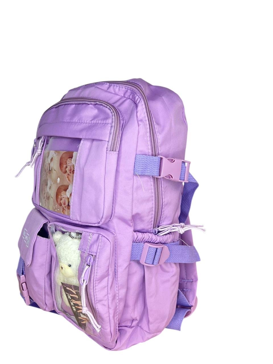 El material de lona destaca por su resistencia y versatilidad. Además, incluye un peluche que complementa su estética, convirtiéndolo en una opción atractiva tanto para adultos como para niños. Las fotos reales del producto reflejan fielmente su calidad y detallado diseño.